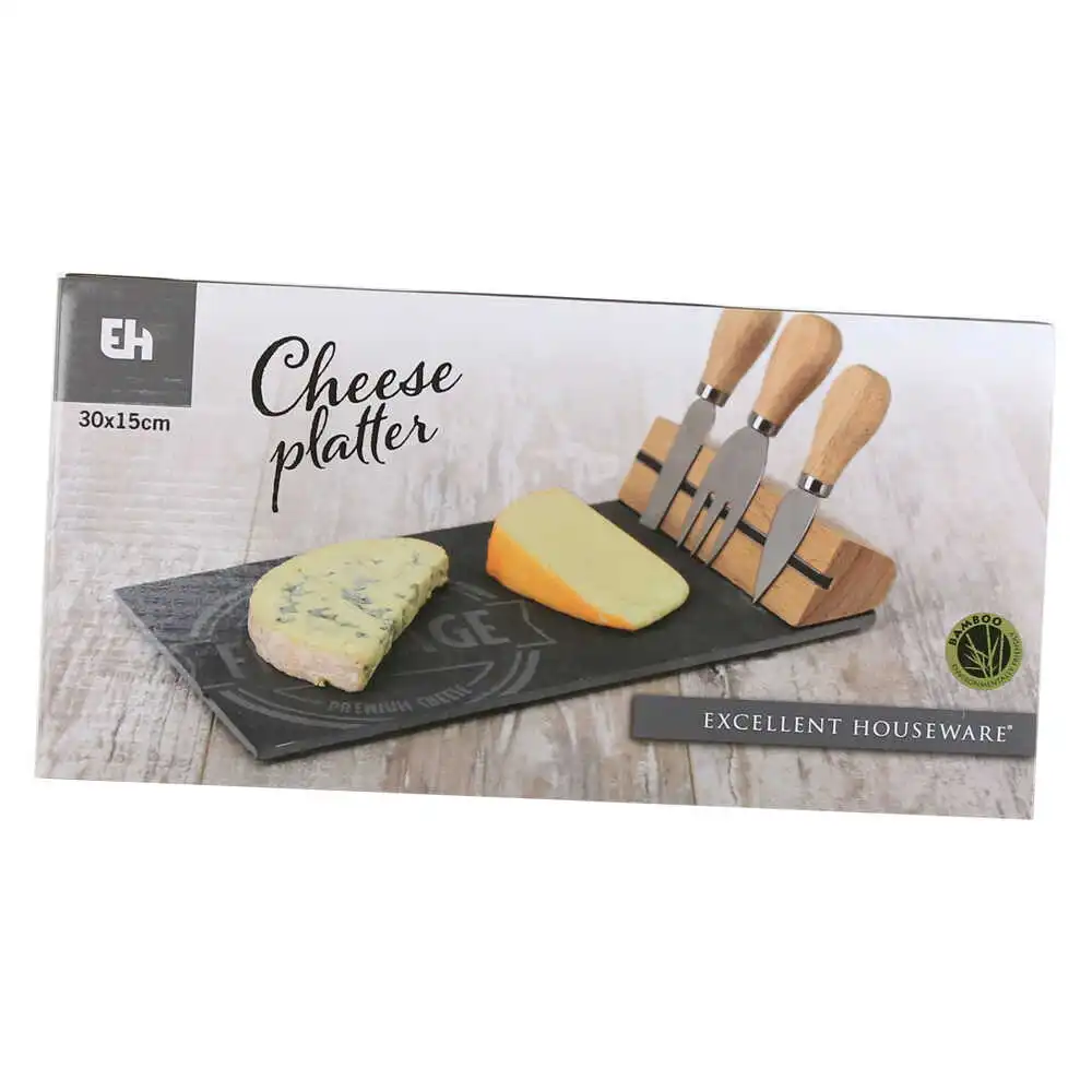 Set servire branzeturi cu 3 cutite, tava cu magnet, 30×15 CM, Excellent Houseware
