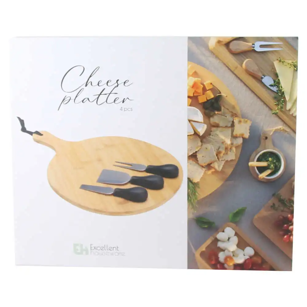 Set servire branzeturi cu tava din bambus si 3 cutite, Excellent Houseware