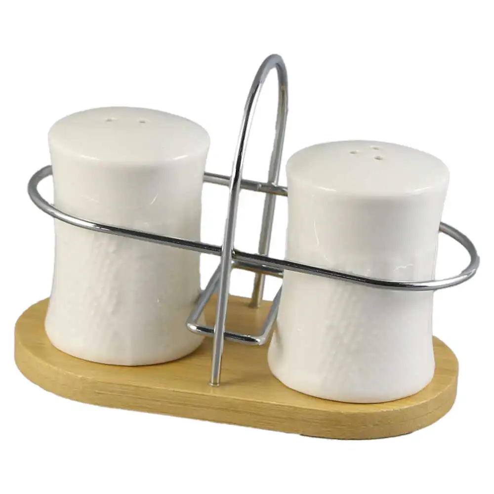 Set solnita si pipernita cu suport inox, White