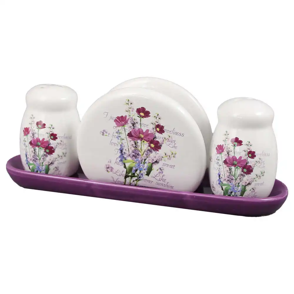Set solnita si pipernita cu suport servetel din ceramica 23×9 CM, Mararite