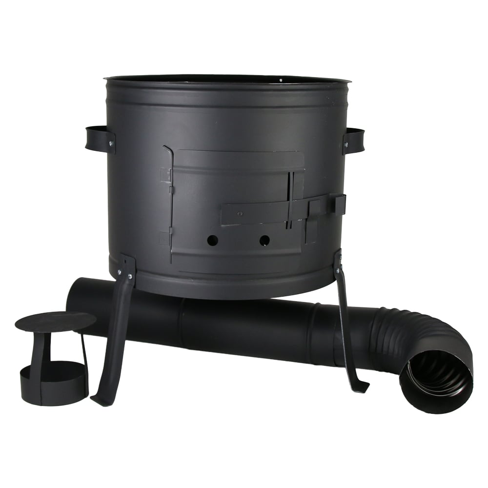 Soba pentru ceaun, dimensiuni 39 x 32/50 cm, echipata cu cos, cot si palarie. Ideala pentru gatit in aer liber, stabila si usor de utilizat.