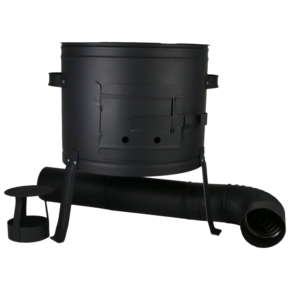 Soba pentru ceaun, dimensiuni 42 x 32/50 cm, echipata cu cos, cot si palarie. Ideala pentru gatit in aer liber, stabila si usor de utilizat.