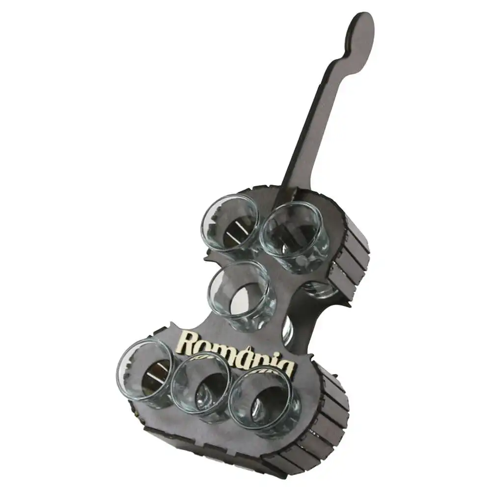 Suport din lemn „Romania” cu 6 pahare, 15×35 CM, Vioara, maro