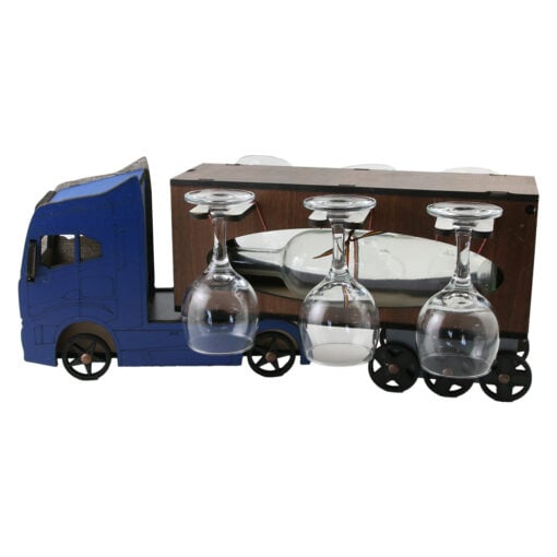 Suport lemn Camion cu o sticla si 6 pahare 52 x 23 cm
