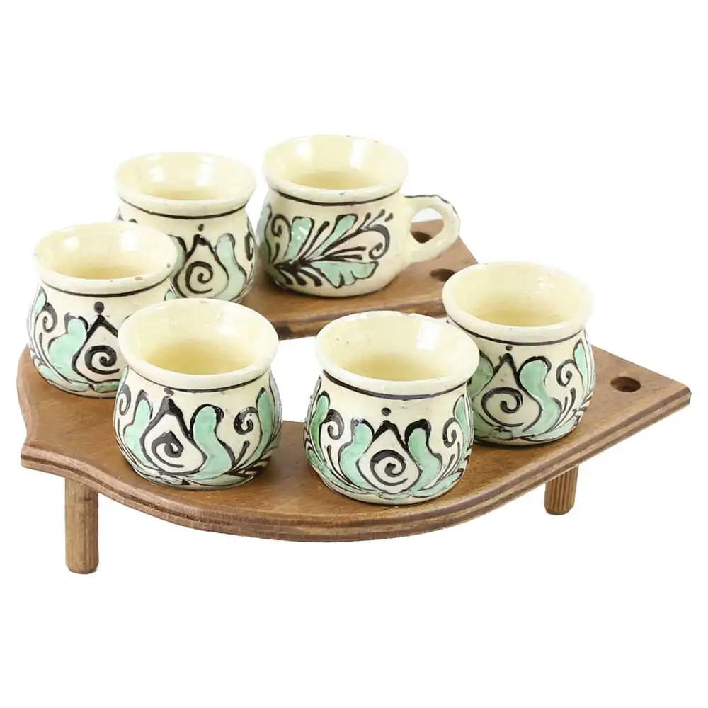Suport lemn Potcoavacu 6 canite din ceramica