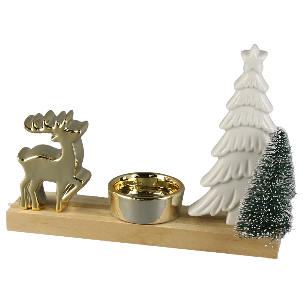 Suport lumanare din ceramica, cu ren si brad 19×13 CM