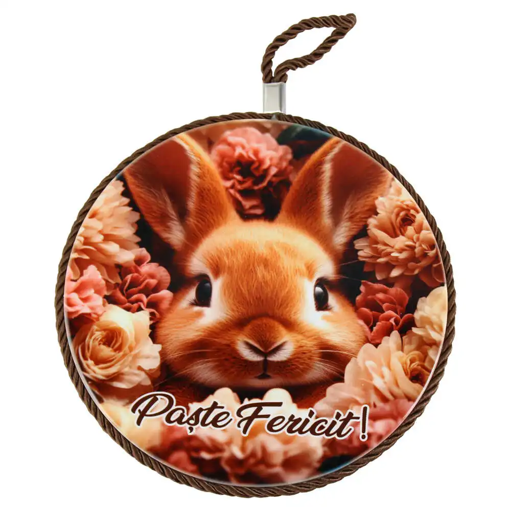 Suport oale decor din ceramica „Paste Fericit!”, 17 CM, Iepuras