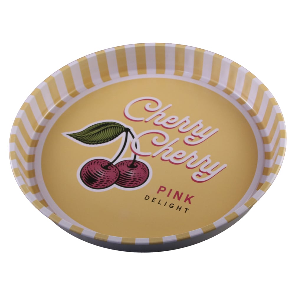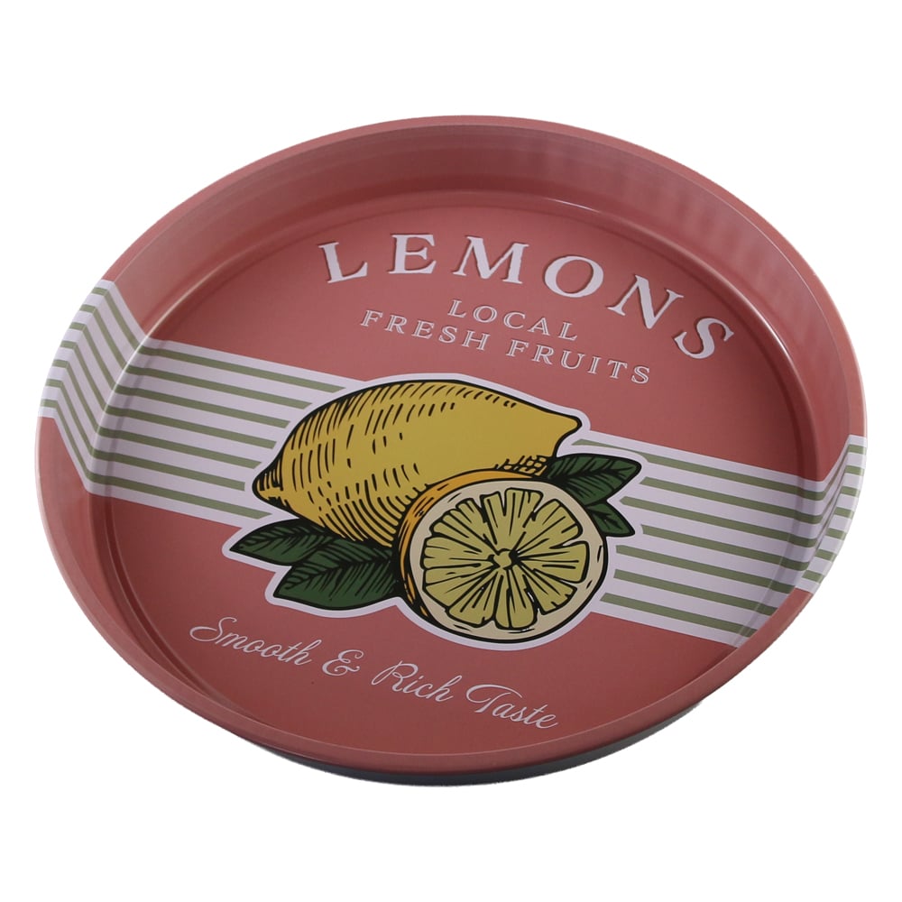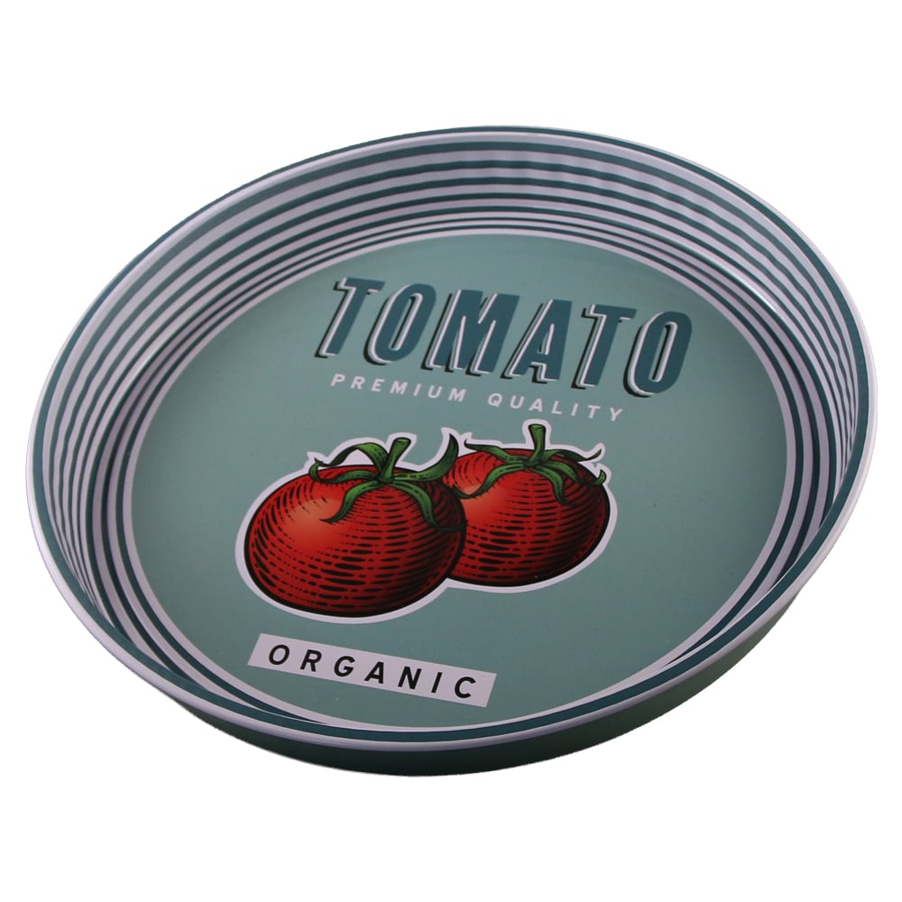 Tava metalica de servire, 33 x 4 cm, in modele variate. Ideala pentru servirea bauturilor si gustarilor. Rezistenta si usor de curatat.