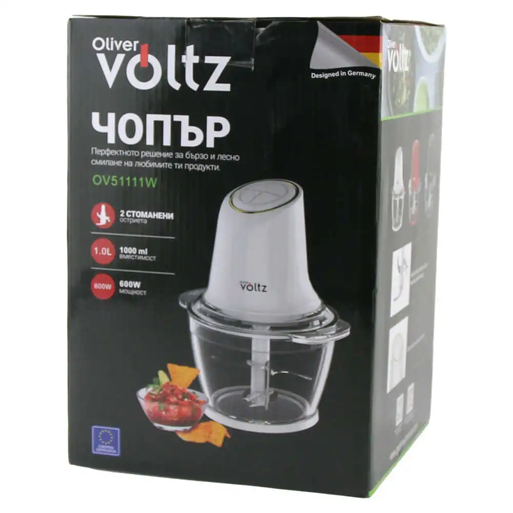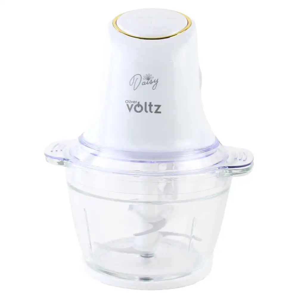 Tocator/chopper electric cu bol din sticla 1 L, 600W, Voltz Daisy, lama dubla din otel, alb