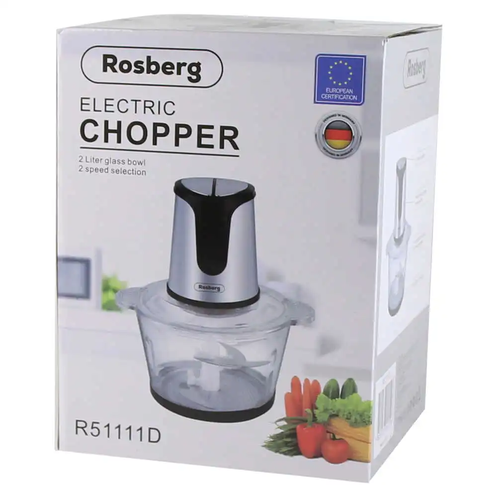 Tocator/chopper electric cu bol din sticla 2 L, Rosberg, 400 W