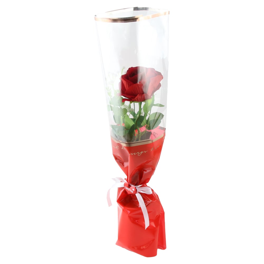 Trandafir artificial cu verdeata, in ambalaj, 40 cm