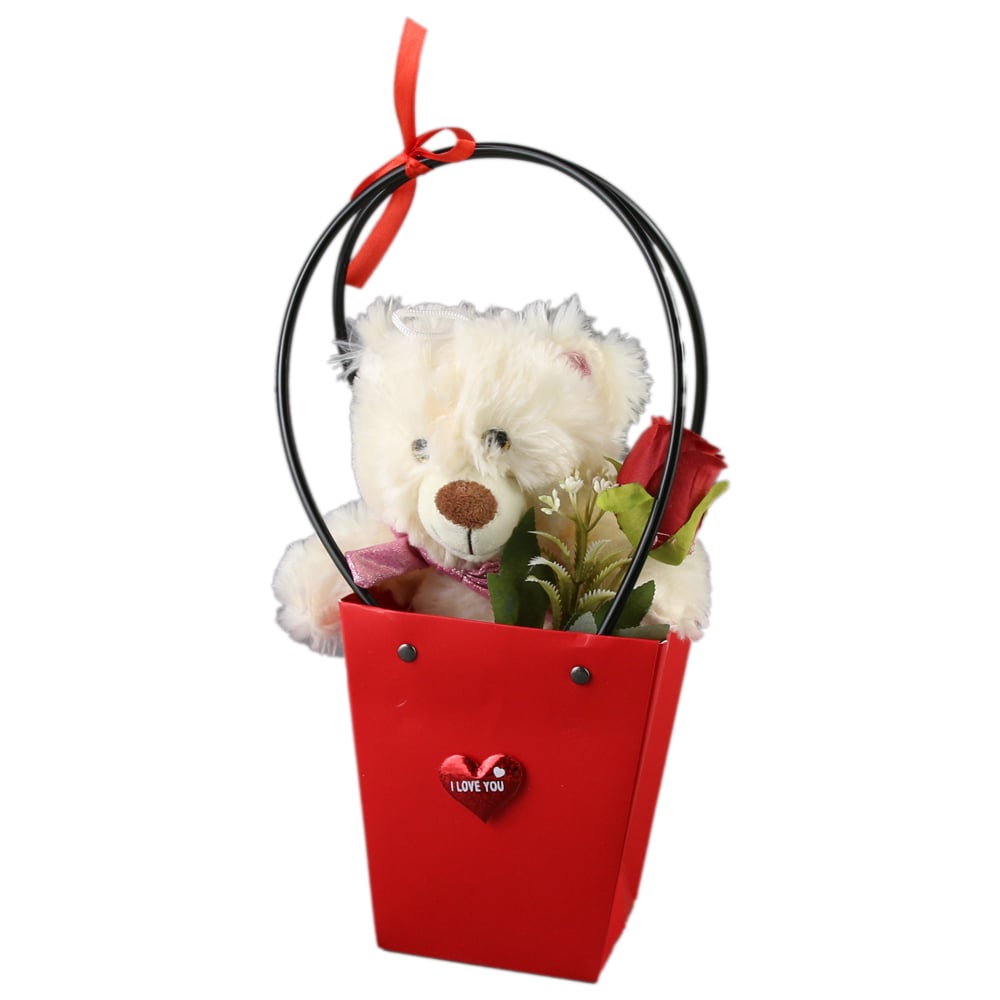 Ursulet de plus cu trandafir, in cutie cadou 22 cm