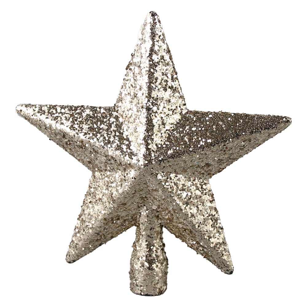 Varf de brad cu glitter, Stea, din plastic, 19 CM