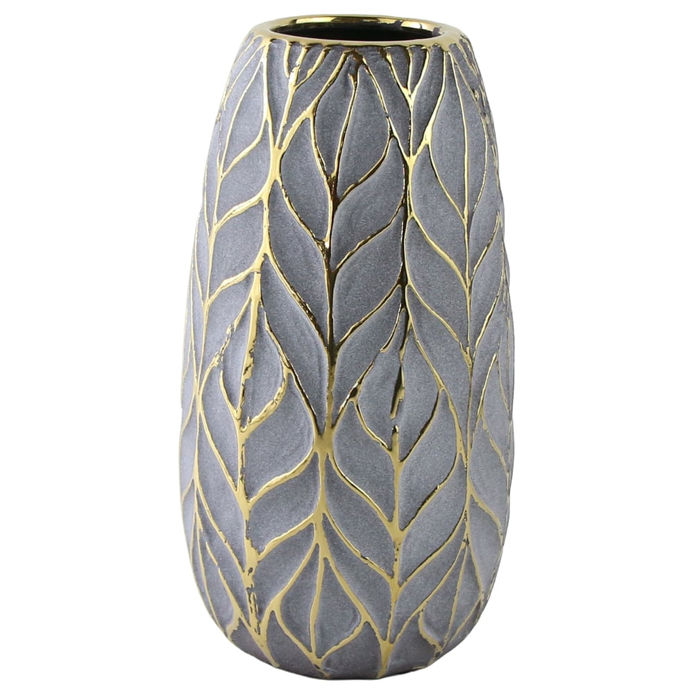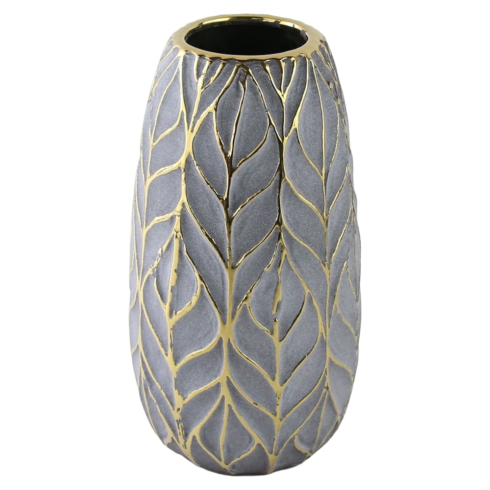 Vaza decorativa din ceramica 25 cm, frunze gri si auriu
