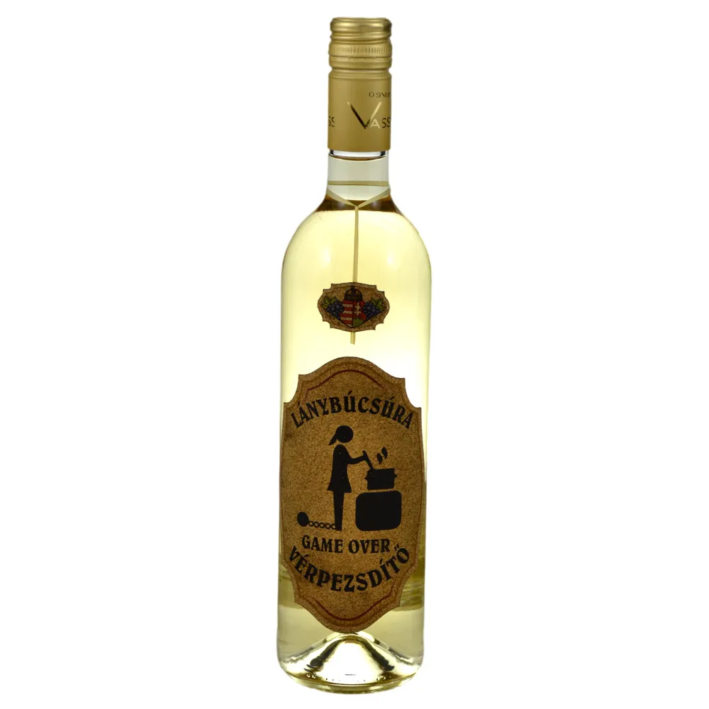 Vin alb 0.75l cu eticheta din pluta gravata cu laser – Design „Leanybucsura”