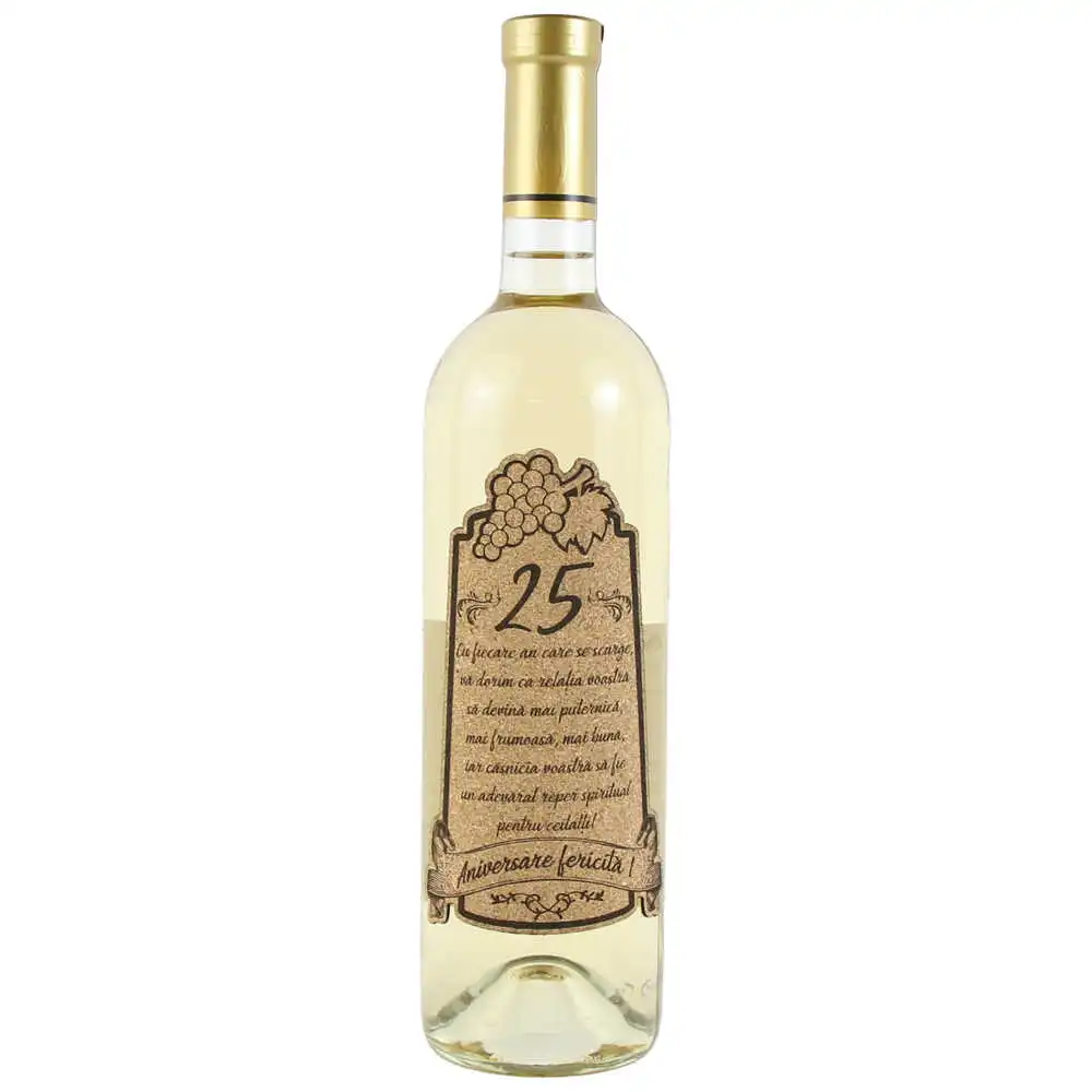 Vin alb 750 ml „25 Aniversare fericita!” cu eticheta personalizata din pluta