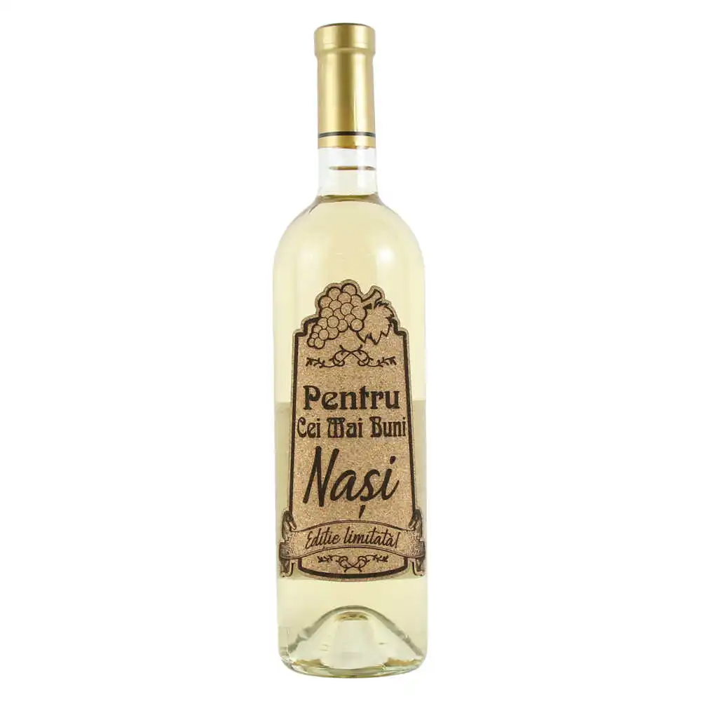 Vin alb 750 ml „Nasi pentru o zi….” cu eticheta personalizata din pluta