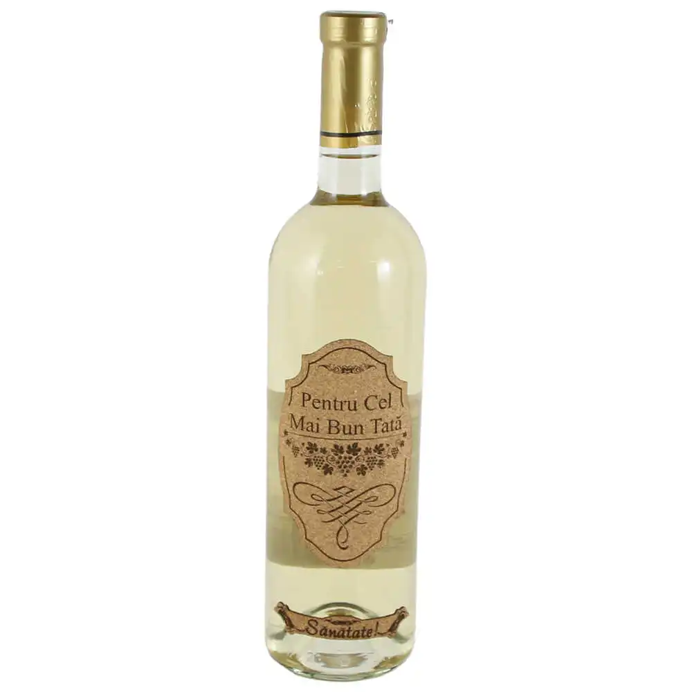 Vin alb 750 ml „Pentru cel mai bun Tata, Sanatate!”, cu eticheta din pluta – Laser
