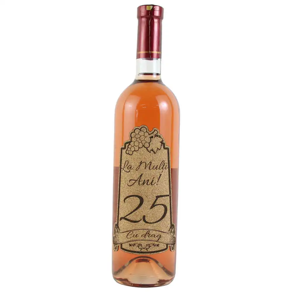 Vin rose 750 ml „25 La multi ani! cu drag” cu eticheta personalizata din pluta