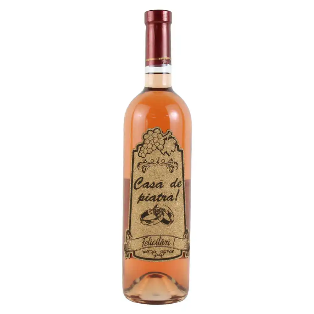 Vin rose 750 ml „Casa de piatra! Felicitari!” cu eticheta personalizata din pluta