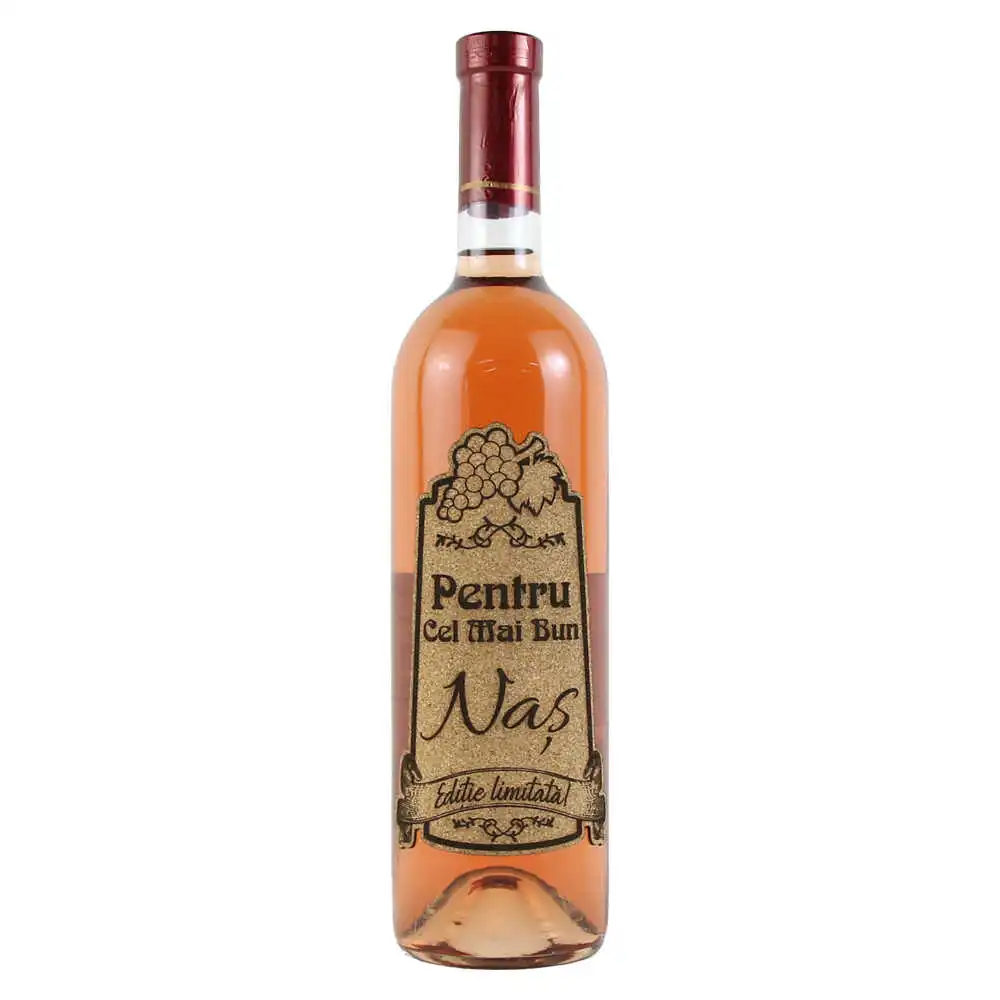 Vin rose 750 ml „Pentru cel mai bun Nas” cu eticheta personalizata din pluta