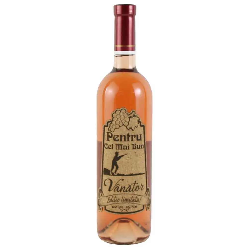 Vin rose 750 ml „Pentru cel mai bun Vanator” cu eticheta personalizata din pluta