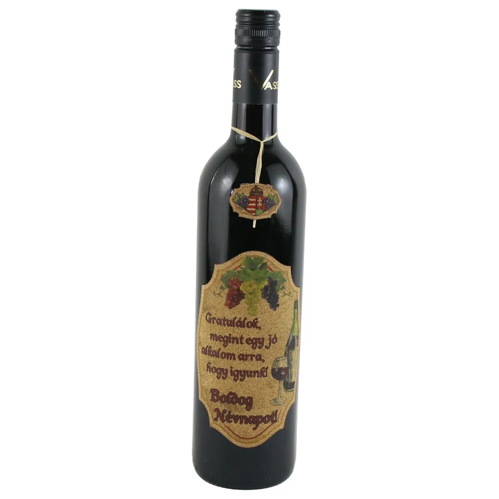 Vin rosu 0.75 L cu eticheta din pluta „Boldog Nevnapot! Gratulalok…”