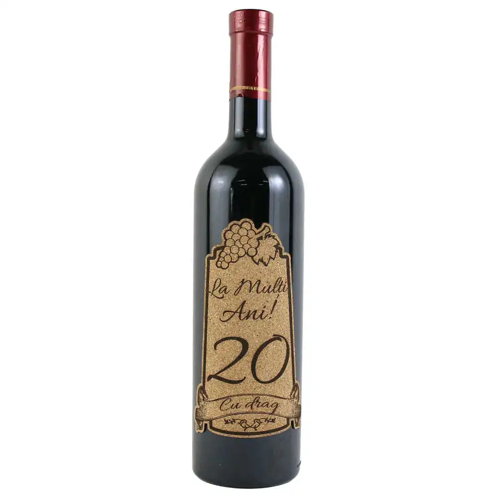 Vin rosu 750 ml „20 La multi ani! cu drag” cu eticheta personalizata din pluta