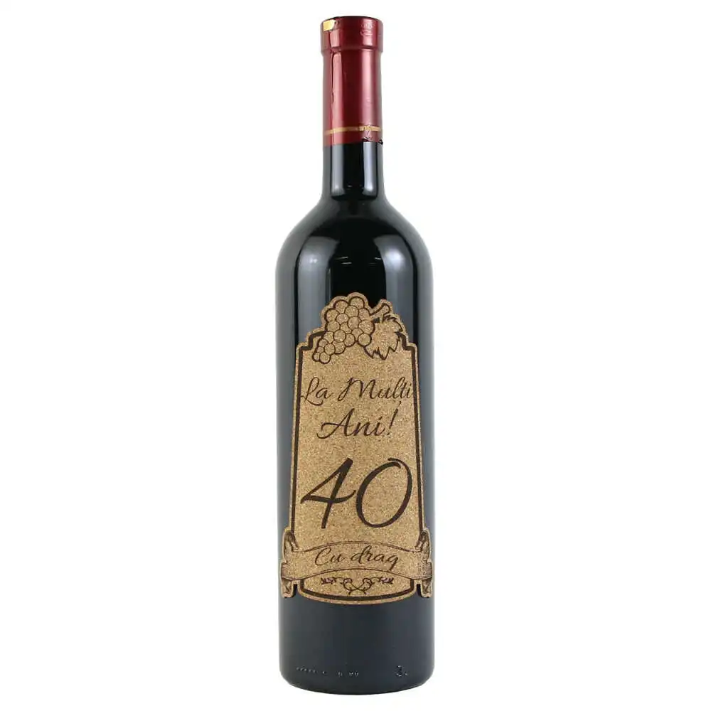Vin rosu 750 ml „40 La multi ani! Cu drag” cu eticheta personalizata din pluta