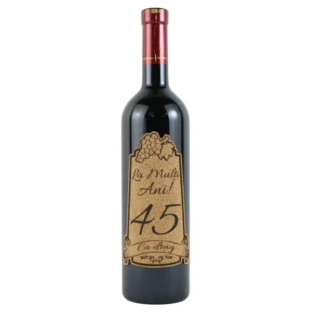 Vin rosu 750 ml „45 La multi ani! Cu drag” cu eticheta personalizata din pluta