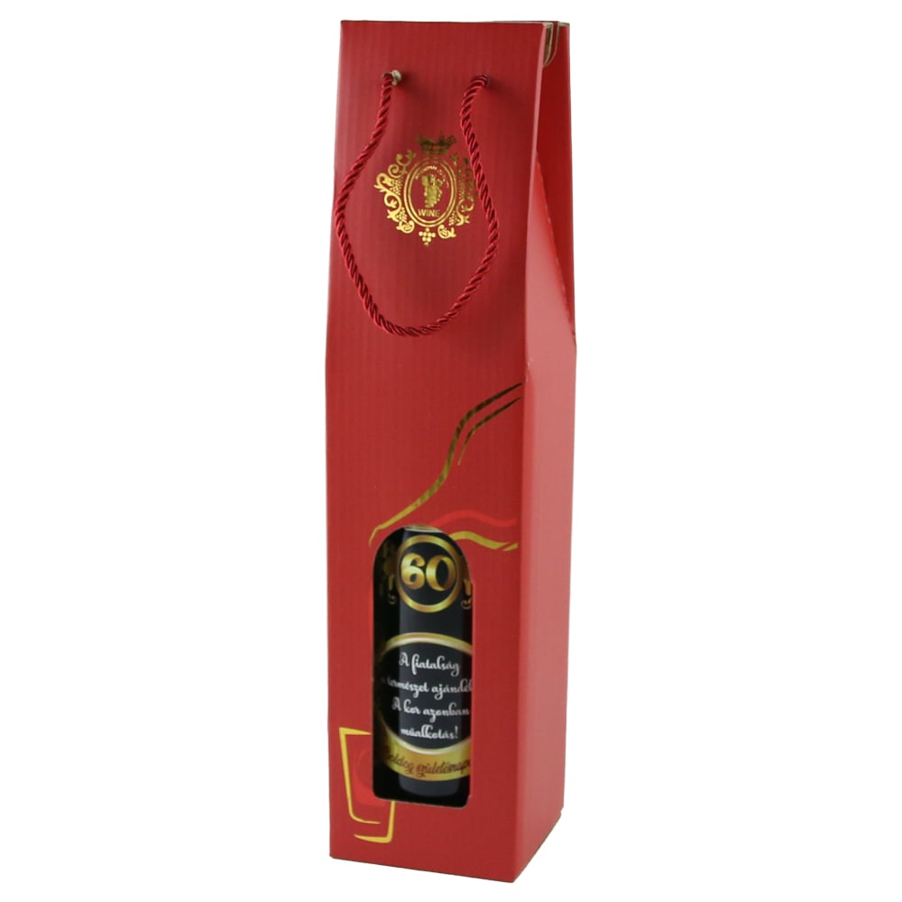 Vin rosu 750 ml „A fiatalsag a termeszet ajandeka…60, Boldgog Szuletesnapot!”, cu suport cadou