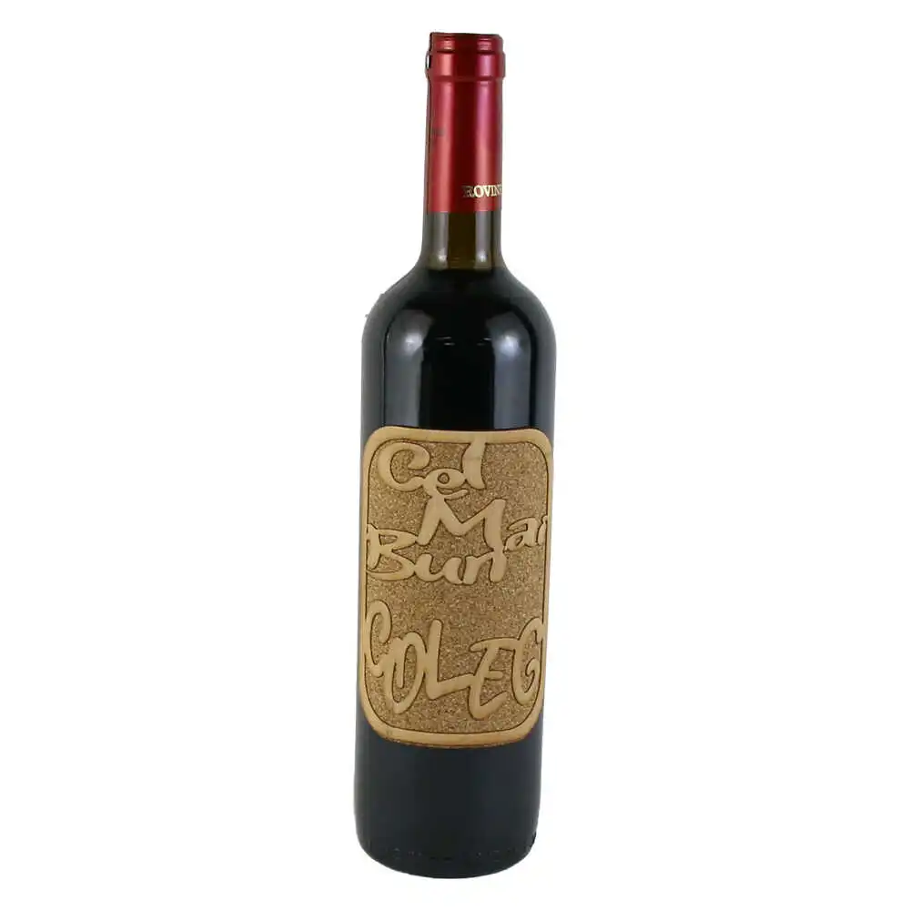 Vin rosu 750 ml „Cel mai bun Coleg”, cu eticheta din pluta si lemn