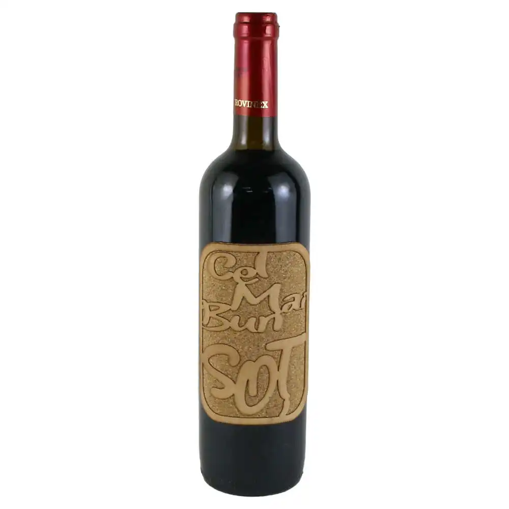 Vin rosu 750 ml „Cel mai bun Sot”, cu eticheta din pluta si lemn
