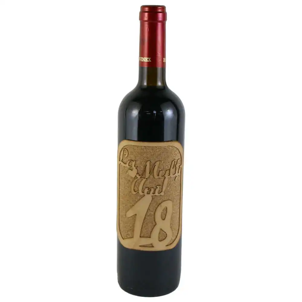 Vin rosu 750 ml „La multi ani! 18”, cu eticheta din pluta si lemn