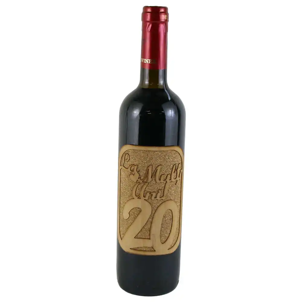 Vin rosu 750 ml „La multi ani! 20”, cu eticheta din pluta si lemn