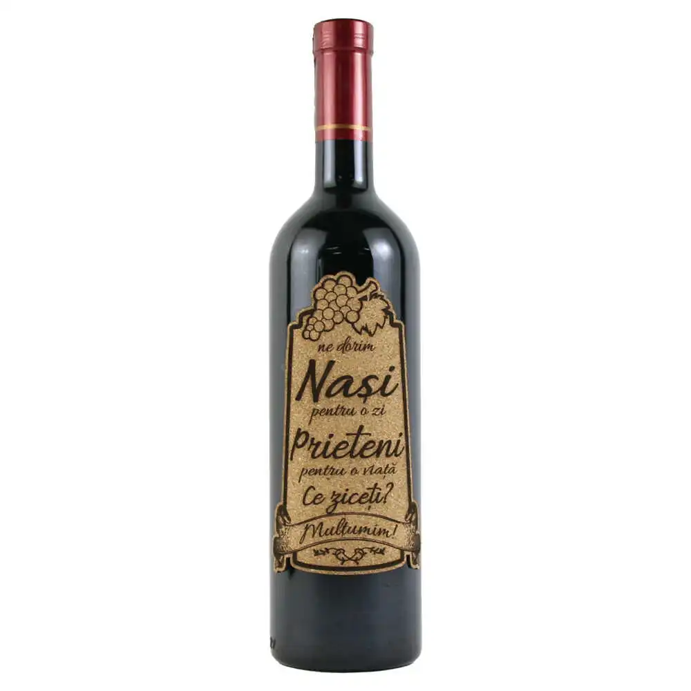 Vin rosu 750 ml „Nasii/Nasi pentru o zi….” cu eticheta personalizata din pluta