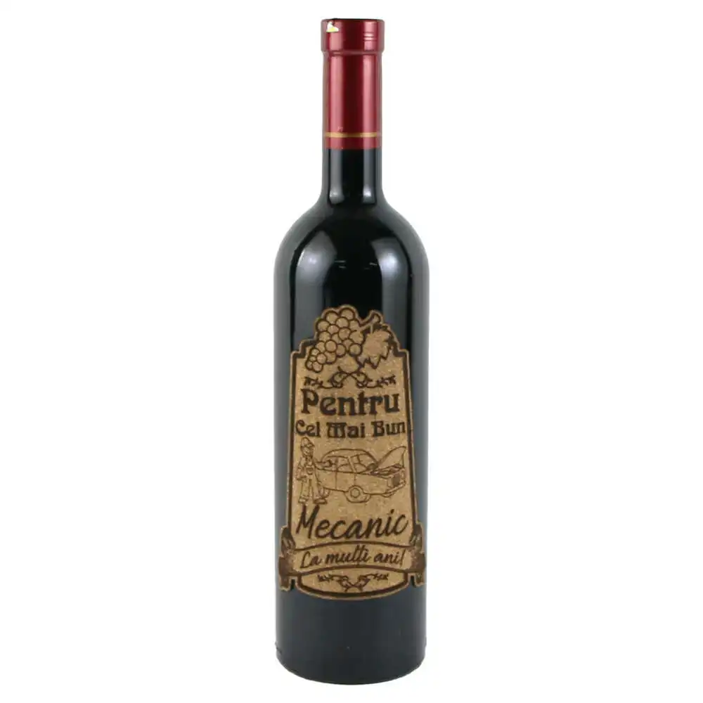 Vin rosu 750 ml „Pentru cel mai bun Mecanic” cu eticheta personalizata din pluta