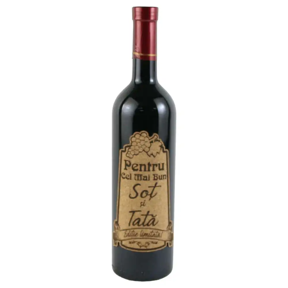 Vin rosu 750 ml „Pentru cel mai bun Sot si Tata” cu eticheta personalizata din pluta